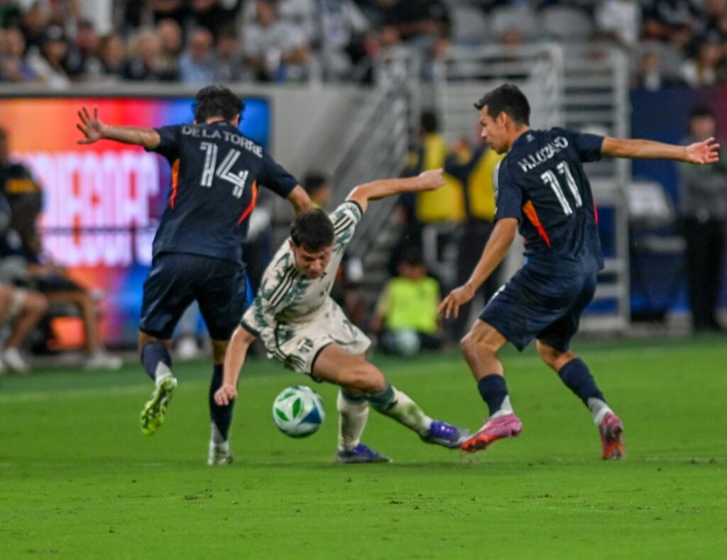 As the clock was winding down, Pellegrino got on the end of a pass inside the box, and an apparent handball was called on a sliding Portland defender. Referee Rosendo Mendoza called for a penalty kick, but after a VAR check, it was determined that the ball hit the thigh of the player and not the hand. The penalty call was overturned.