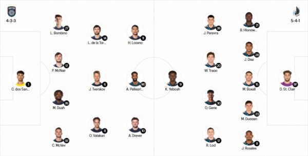 Head coach Mikey Varas tweaked the normal starting lineup just a little bit from what the fans are used to seeing. Anibal Godoy started on the bench due to recovery reasons after representing his home country of Panama. Replacing him in the right midfield slot was Onni Valakari, who Varas often plays in the centre-forward position. Tonight, that honor went to Amahl Pellegrino, who made the first start in the starting XI since being signed back in August.
