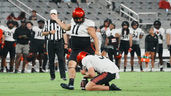 Scoring points is the object of a football team, and placekickers are usually near the top in scoring at the end of a season. The Mountain West Preseason Special Teams Player of the Year had a great 2024, but the Aztecs will need him to be even better in 2025. Finishing drives with at least three points boosts morale. A coach’s confidence in a kicker to make field goals from 50+ yards out also helps manage end-of-half and game situations. For a team that lost three games by a total of nine points, this can make a big difference. Plascencia knocked in a 57-yard field goal at Fan Fest last week, but missed a 39-yard attempt. Consistency will be key from all yardage.